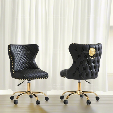 Chaises de salon de beauté en simili cuir avec dos tufté sculpté de lion pivotant meubles de manucure avec roue